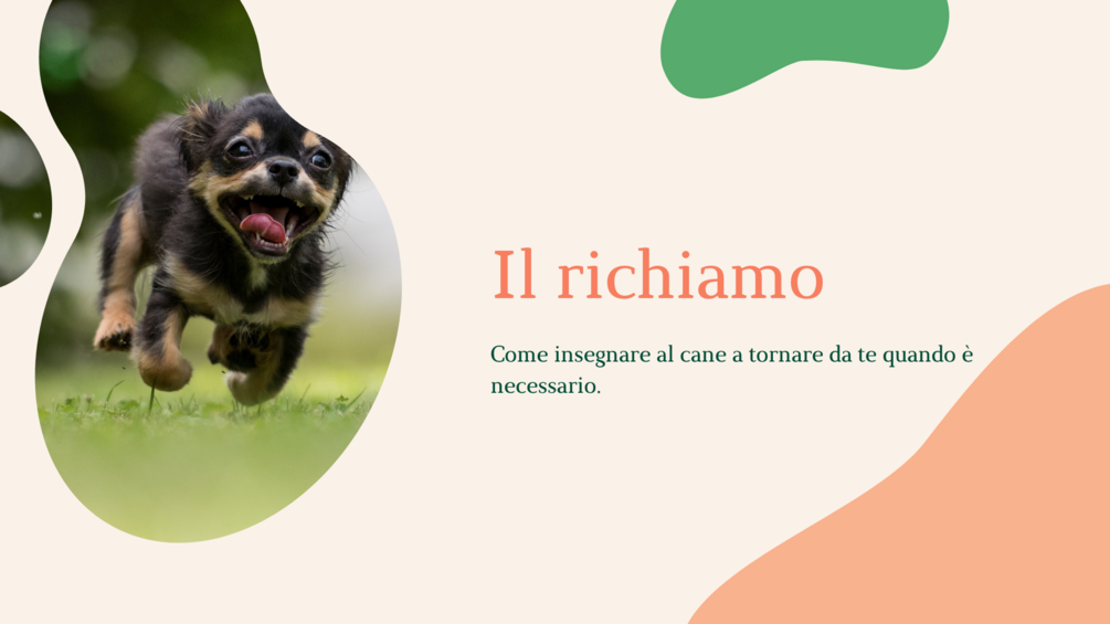 Non avrai mai più paura di liberare il tuo cane in zone non recintate e non dovrai più temere il peggio se ti scappa il guinzaglio per sbaglio. Invece di tentare invano di controllare il tuo cane, grazie ad esercizi semplici ed efficaci, diventerai per lui un punto di riferimento imprescindibile in ogni momento. Con esercizi semplici ma efficaci, ti insegno come far tornare volentieri il tuo cane da te.